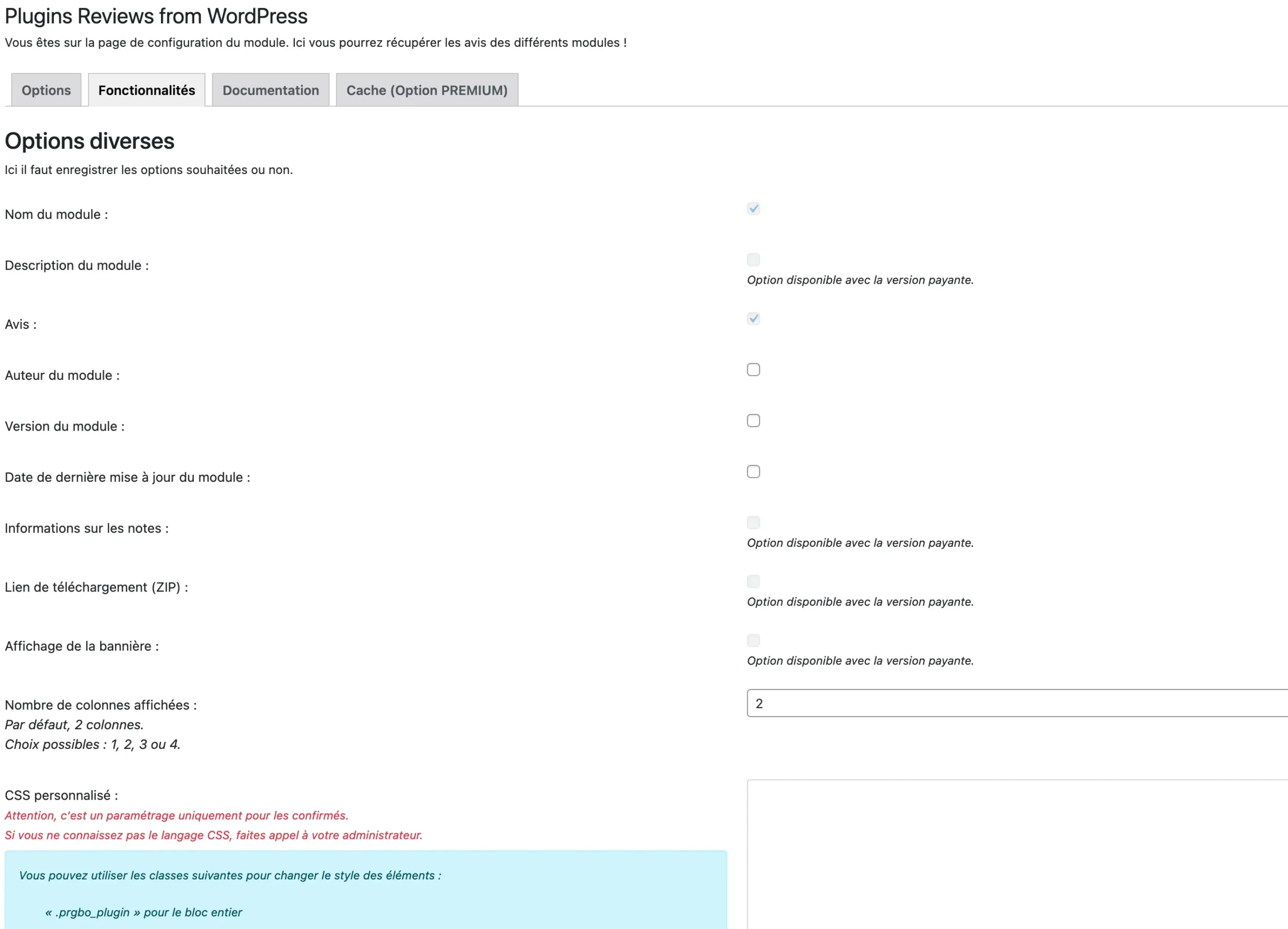 * Nouveau: Affichage de la description du module (PREMIUM)