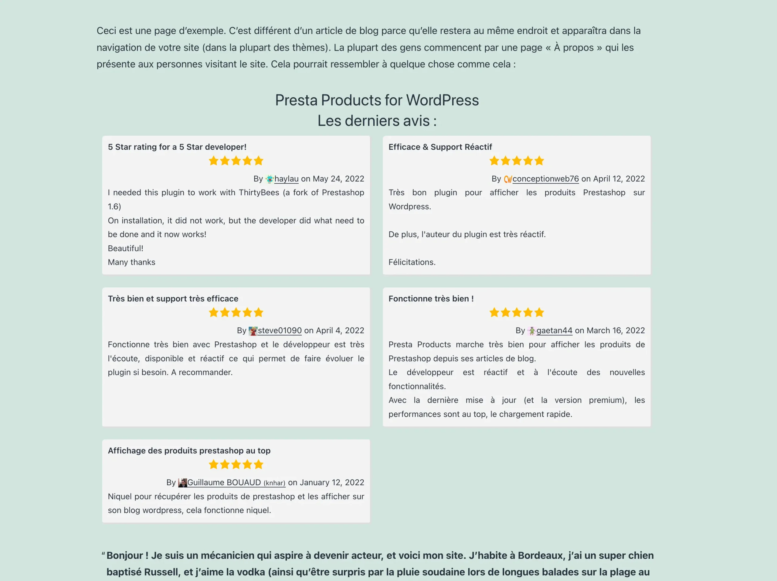 Affichage des avis des modules WordPress depuis le site WordPress.org.