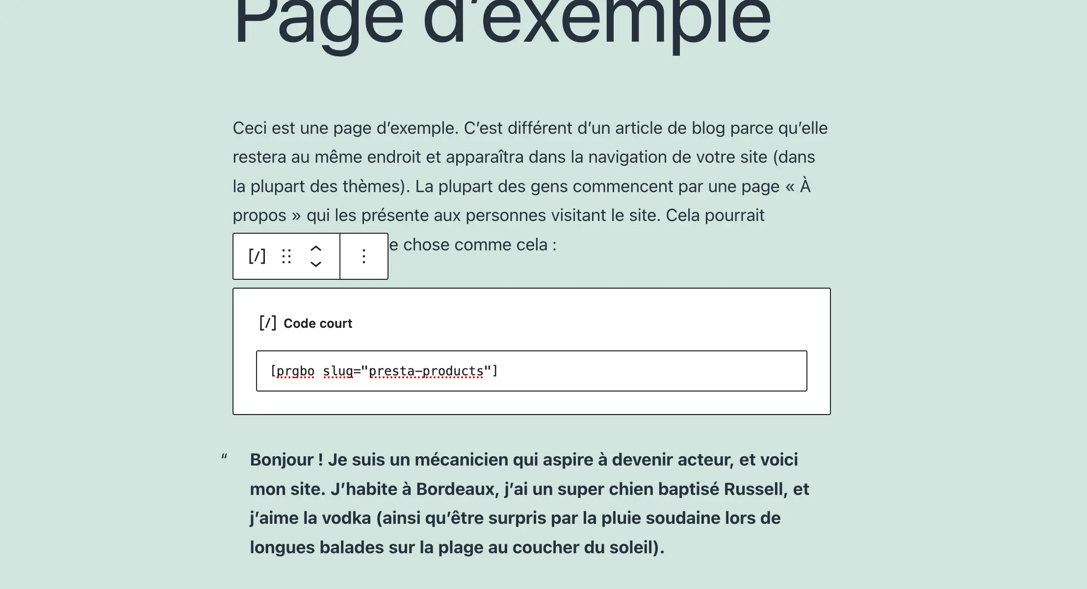 * Nouveau: Ajout de documentation de shortcode (+ exemples)